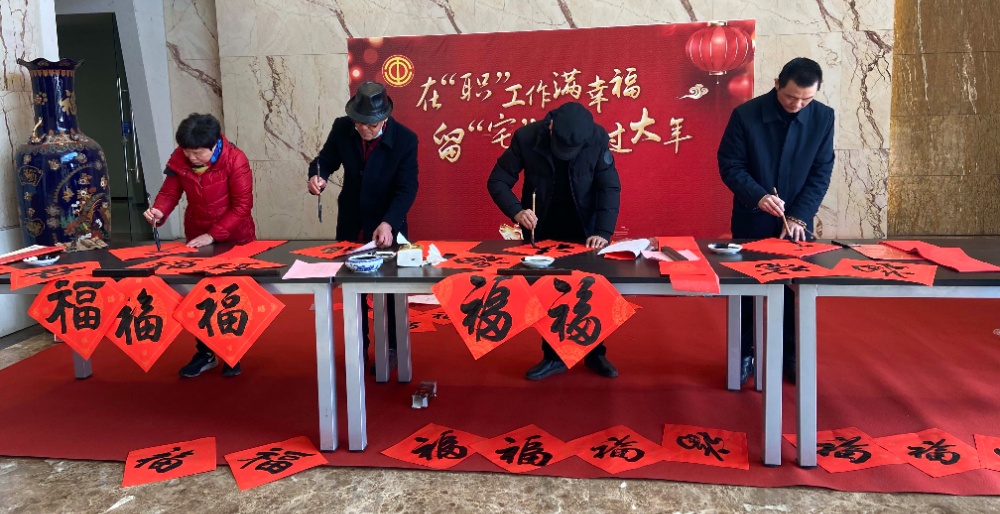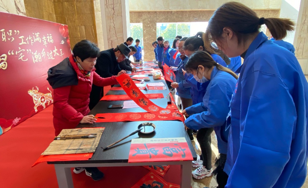 妙筆生花送祥瑞,翰墨留香迎新春。新春將至,疫情防控力度有增無減,為積極鼓勵新居民留在海寧過年,2021年1月12日下午,鹽官鎮(zhèn)總工會邀請市工人文化宮、職工文體聯(lián)合會、職工攝影家協(xié)會的書法家、攝影家來到我公司開展新春送春聯(lián)福字活動。