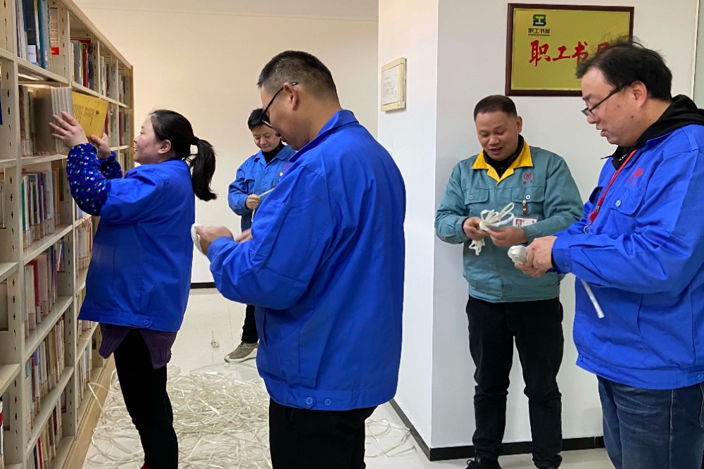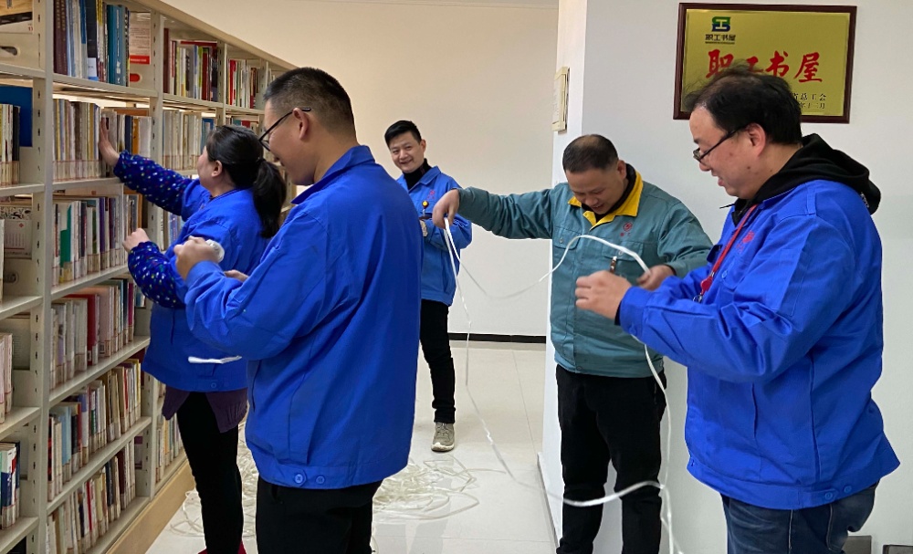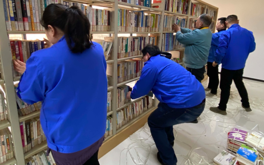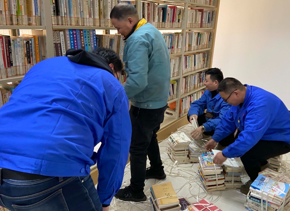 將2000冊圖書搬上書架并有序擺放是一項(xiàng)浩大的工作。2021年1月11日下午,幾位黨員志愿者發(fā)揮無私奉獻(xiàn)的志愿精神,來到我公司行政樓四樓的職工書屋,小心翼翼地把一摞一摞圖書搬上書架,并根據(jù)圖書的大小有序擺放整齊。在將圖書擺放整齊后,黨員志愿者們還將捆綁圖書的繩子進(jìn)行了整理。