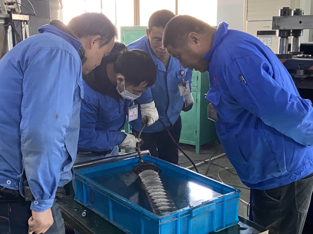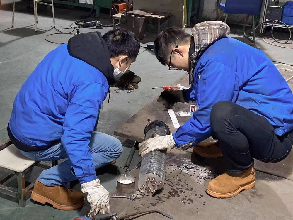 金工車間的電焊工小心翼翼地操作焊槍,在焊接好了裂縫后,還進(jìn)行壓力測試,確保裂縫已完全修復(fù)好。將維修好的零部件裝上沖壓設(shè)備后,經(jīng)過一段時(shí)間的試運(yùn)行,現(xiàn)這臺設(shè)備已恢復(fù)正常生產(chǎn)。