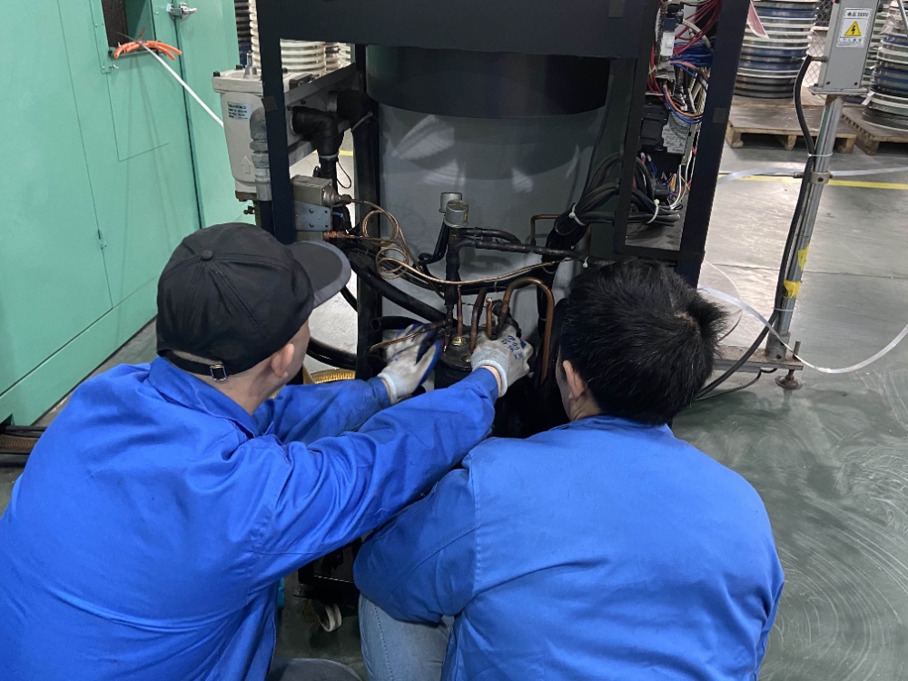近期,一車間的一臺沖壓設(shè)備出現(xiàn)自動(dòng)報(bào)警,不能正常工作,經(jīng)查,是一個(gè)零部件的銅管出現(xiàn)破裂,導(dǎo)致氟利昂泄露,設(shè)備溫度過高,從而不能正常運(yùn)行。據(jù)悉,重新購置這個(gè)零部件費(fèi)用昂貴。為使設(shè)備盡快恢復(fù)正常運(yùn)轉(zhuǎn),不耽誤生產(chǎn)任務(wù),金工車間躬身入局,承擔(dān)起維修重任。